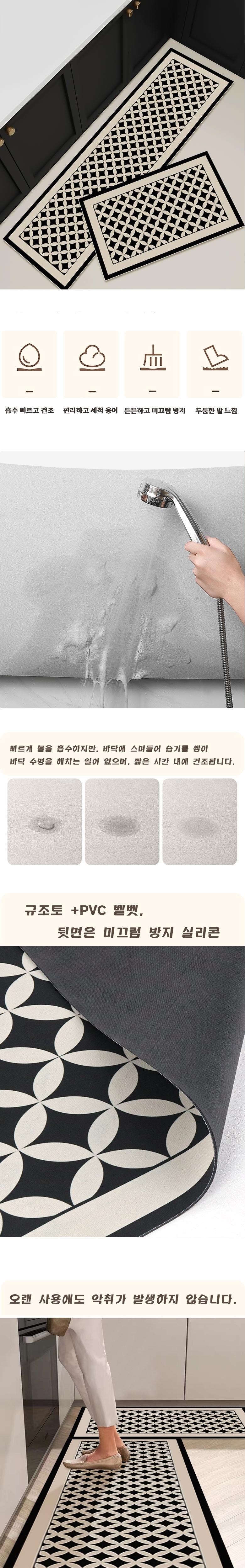 규조토 발매트 세탁가능 미끄럼 주방욕실 현관 거실 화장실 물흡수 미끄럼방지 발판 매트