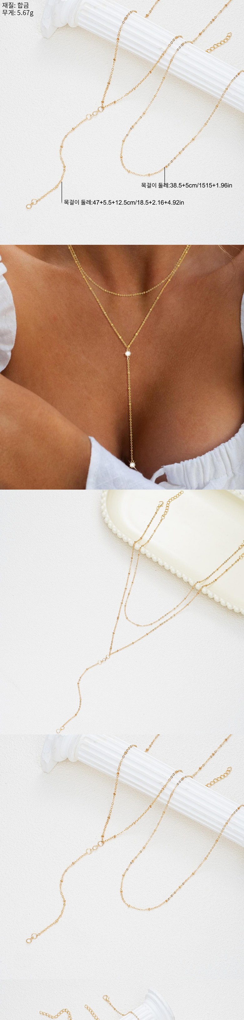 RoseAria 여성 Y형 심플 목걸이 2종 세트