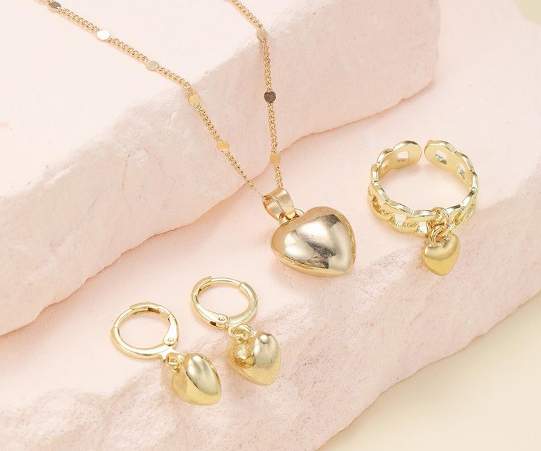 RoseAria 여성 하트 목걸이 + 귀걸이 + 반지 세트