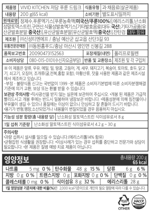 | 제품명 | VIVID KITCHEN 저당 푸룬드링크 | 식품의 유형 | 컨텐츠 참조 |