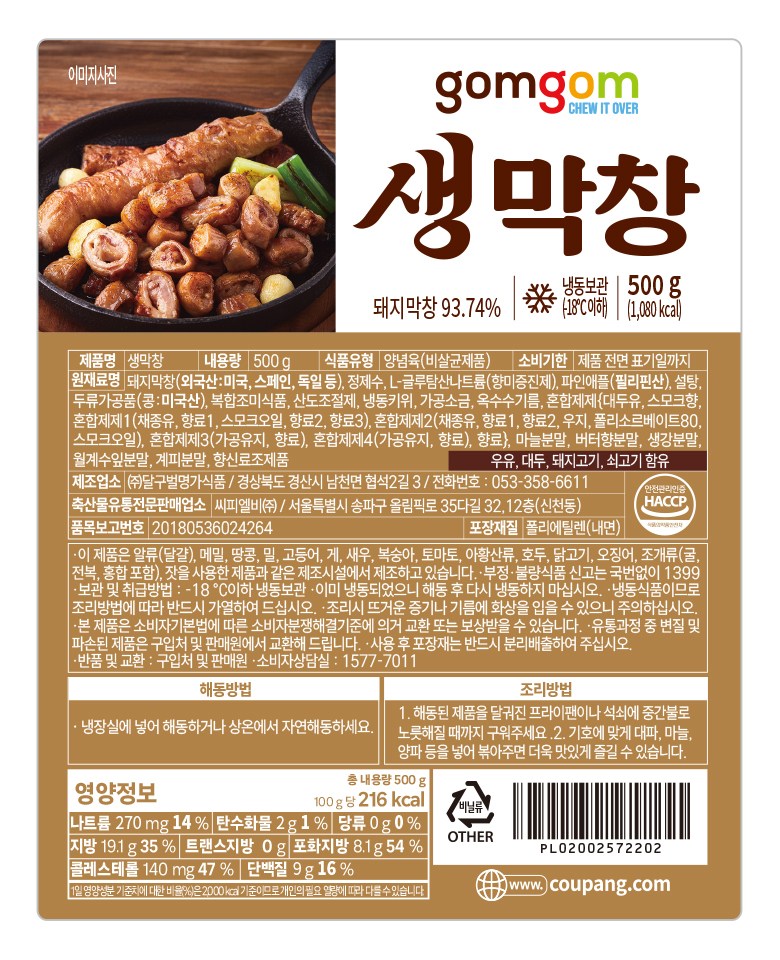 | 제품명 | 생막창 | 식품의 유형 | 컨텐츠 참조 |