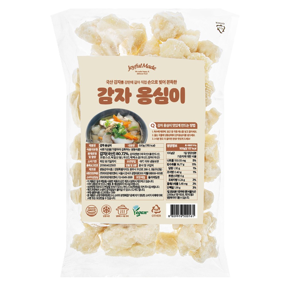 강판에 갈아낸 감자를 정성껏 빚은 감자 옹심이예요. 쫀득쫀득한 식감이 좋아, 뜨끈한 국물에 넣고 폭 건져 드시기만 해도 맛있답니다. 수제비나 미역국 재료로 활용해보세요. 씹으면 씹을수록 고소하고 담백해 자꾸 손이 갈 거예요.