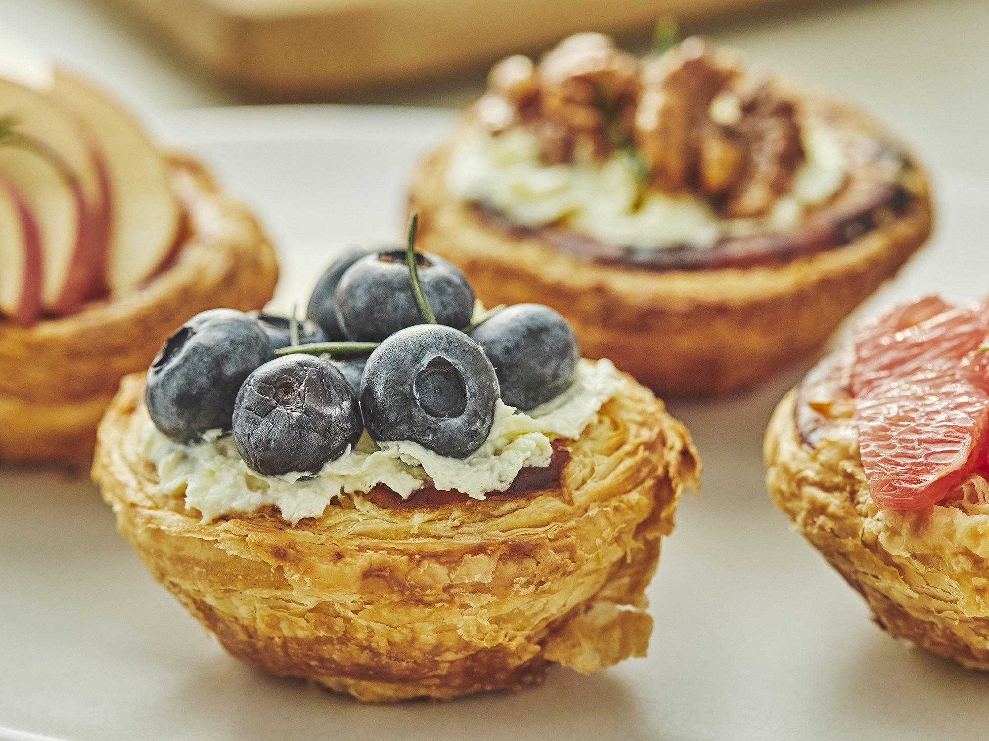 · 블루베리는 은은한 단맛이 매력적인 과일로, 풍미가 강하지 않아 디저트와 잘 어울립니다. 바삭하게 구워낸 타르트에 크림치즈와 블루베리를 올려 상큼한 포인트를 더해보세요.