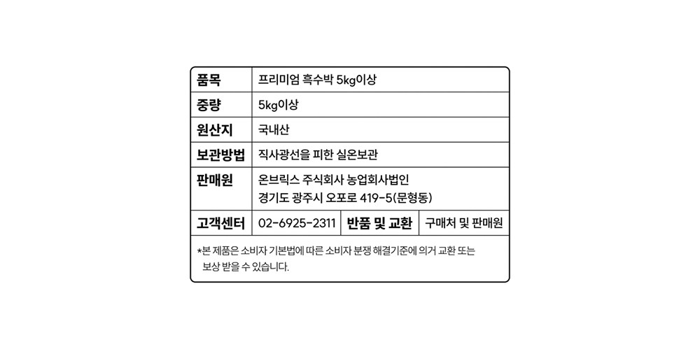 다만, 판매자의 제시사항이 관계법령보다 소비자에게 유리한 경우에는 판매자 제시사항이 적용됩니다.
