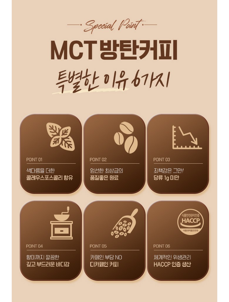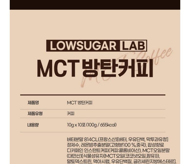 | 제품명 | MCT 방탄커피 | 식품의 유형 | 커피 |