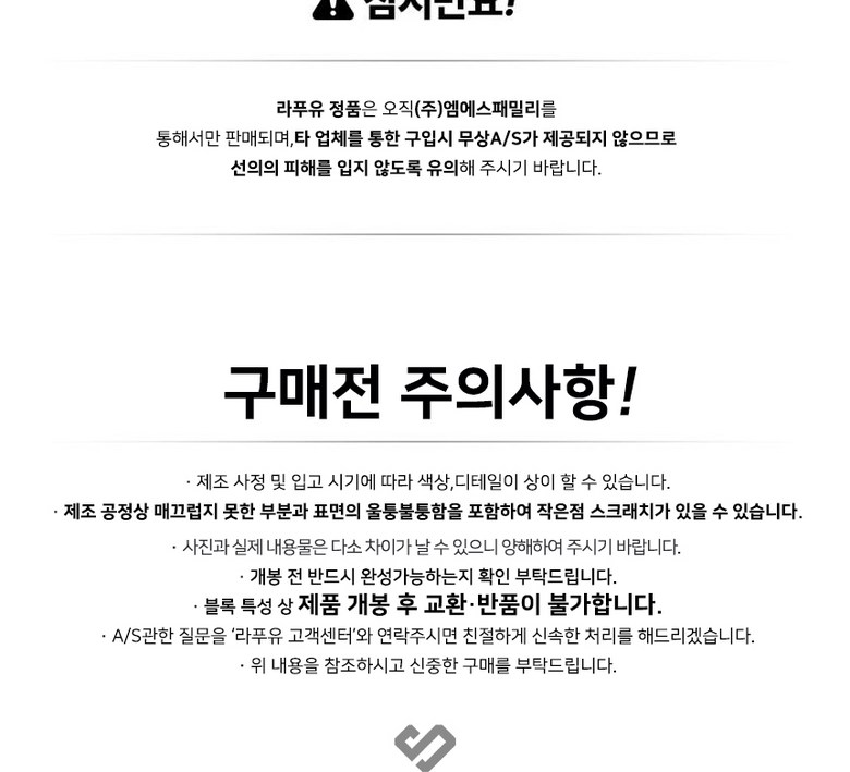 - ㆍ교환/반품에 관한 일반적인 사항은 판매자가 제시사항보다 관계법령이 우선합니다.