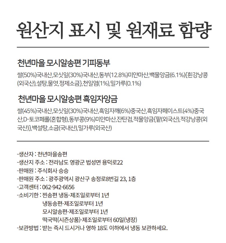 | 생산자 및 소재지 | 상품 상세페이지 참조 | 제조연월일, 소비기한 또는 품질유지기한 | 상품 상세페이지 참조 |