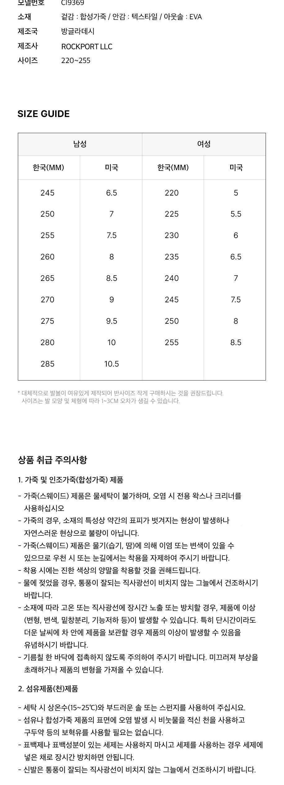 | 치수 | 컨텐츠 참조 | 제조자(수입자) | ROCKPORT LLC / 업체미제공 |