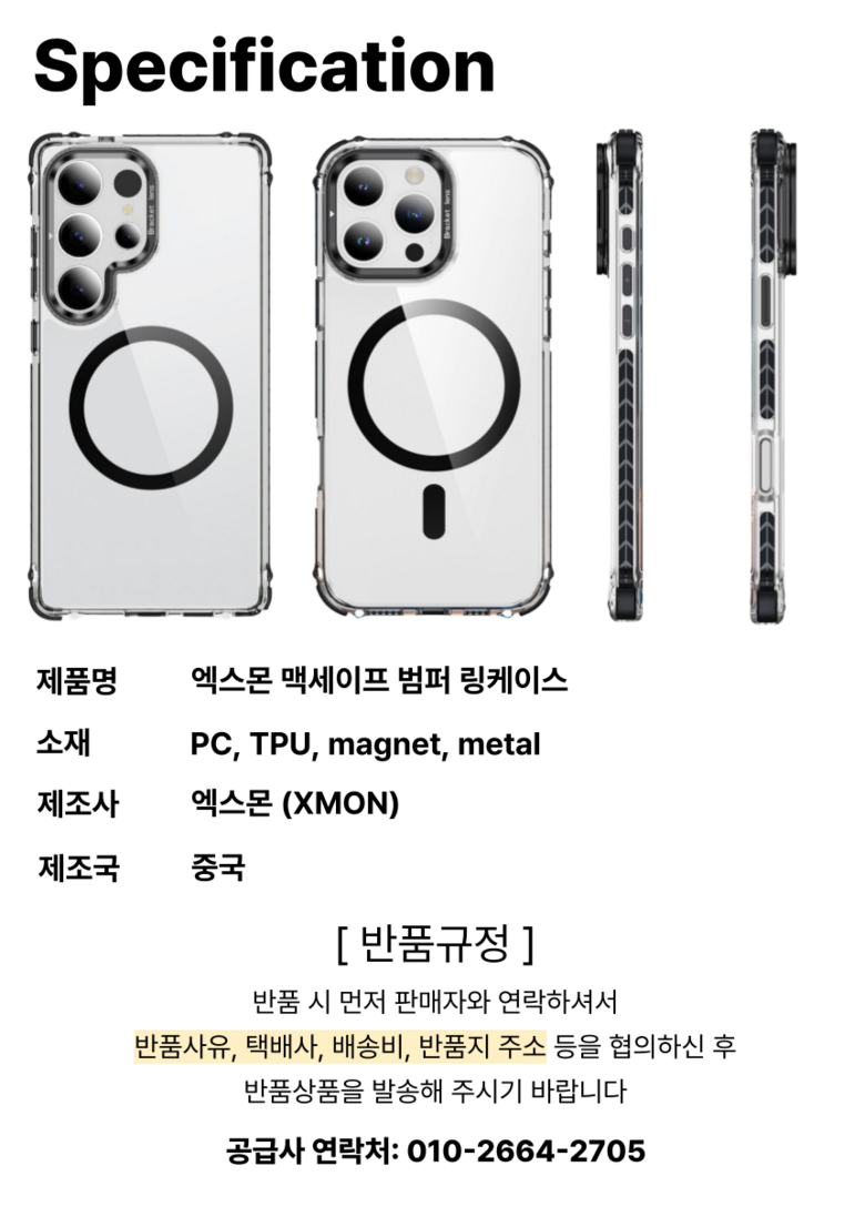 - ㆍ교환/반품에 관한 일반적인 사항은 판매자가 제시사항보다 관계법령이 우선합니다.