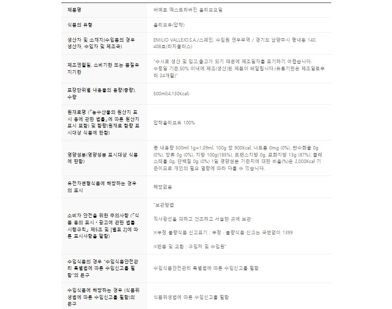 | 제조연월일, 소비기한 또는 품질유지기한 | 상품 상세페이지 참조 | 세부 품목군별 표시사항 | 상품 상세페이지 참조 |