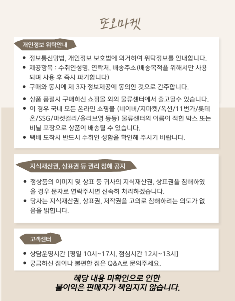 | 품목 또는 명칭 | 상품 상세페이지 참조 | 포장단위별 내용물의 용량(중량),수량,크기 | 상품 상세페이지 참조 |