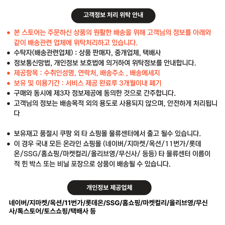 | 배송방법 | 순차배송 | 배송비 | 무료배송 - 도서산간 지역 배송불가 |