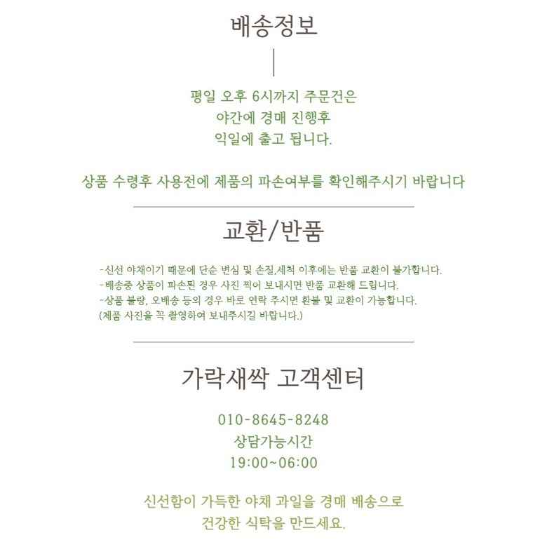 | 배송방법 | 순차배송 | 배송비 | 무료배송 - 도서산간 지역 배송불가 |