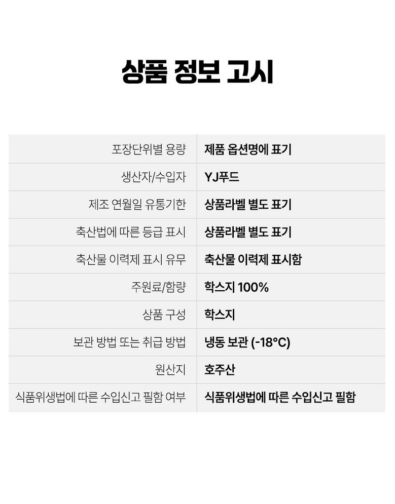 | 생산자(수입자) | (주)신돈축산유통 | 원산지 | 호주산 |