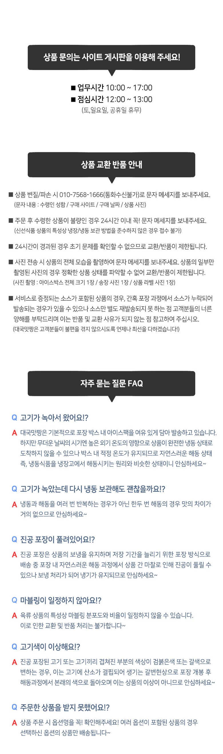 - 상품문의 및 후기게시판을 통해 취소나 환불, 반품 등은 처리되지 않습니다.