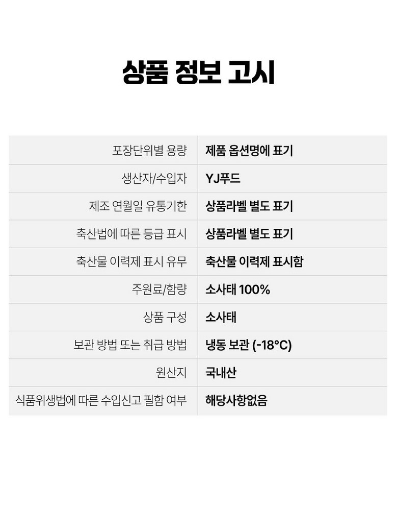 | 제조연월일, 소비기한 또는 품질유지기한 | 상품 상세페이지 참조 | 세부 품목군별 표시사항 | 상품 상세페이지 참조 |