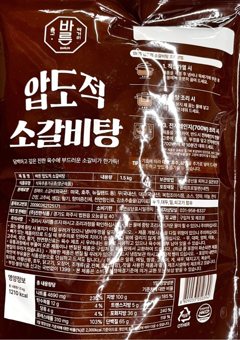 | 포장단위별 내용물의 용량(중량), 수량 | 1.5kg, 1개 | 원재료명 및 함량 | 컨텐츠 참조 |