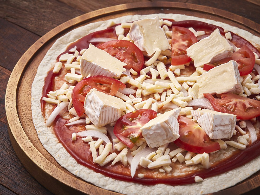 2. 치즈와 토핑을 얹고 구워 피자로 만들어보세요.
