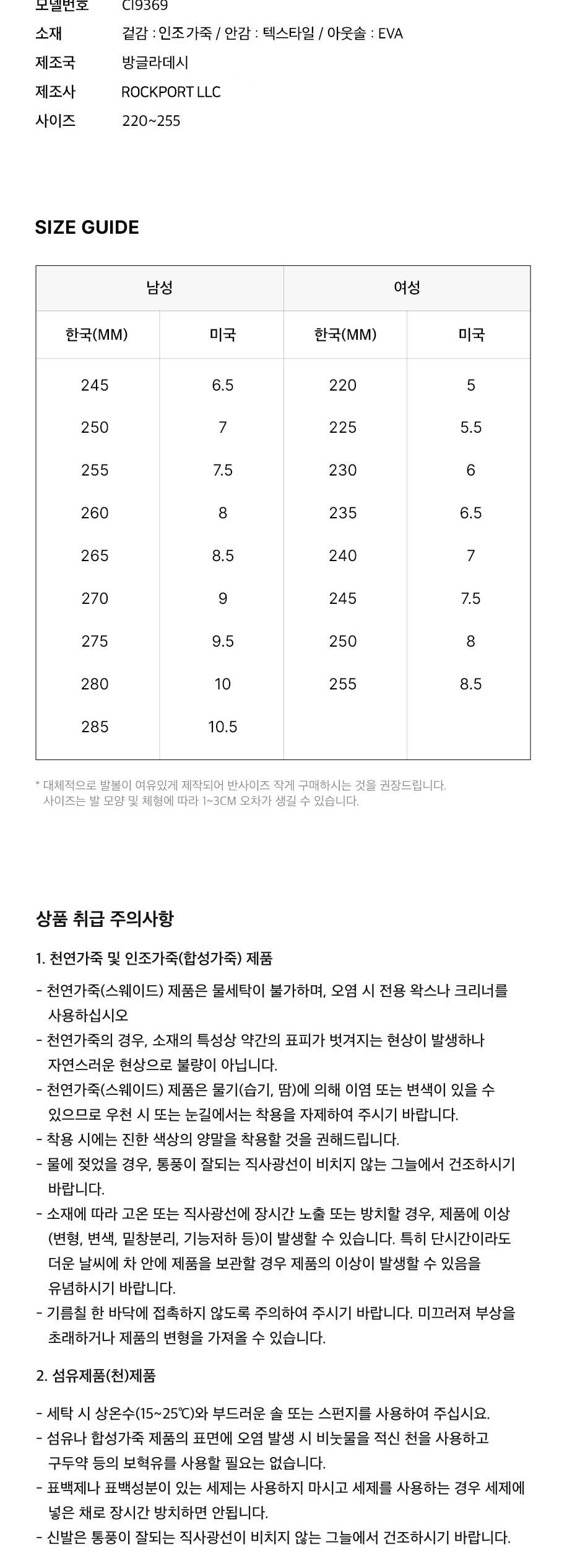 | 치수 | 컨텐츠 참조 | 제조자(수입자) | ROCKPORT LLC / 업체미제공 |