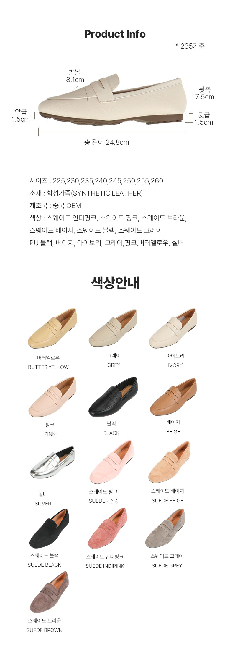 - 신발길이: 225,230,235,240,245,250,255,260