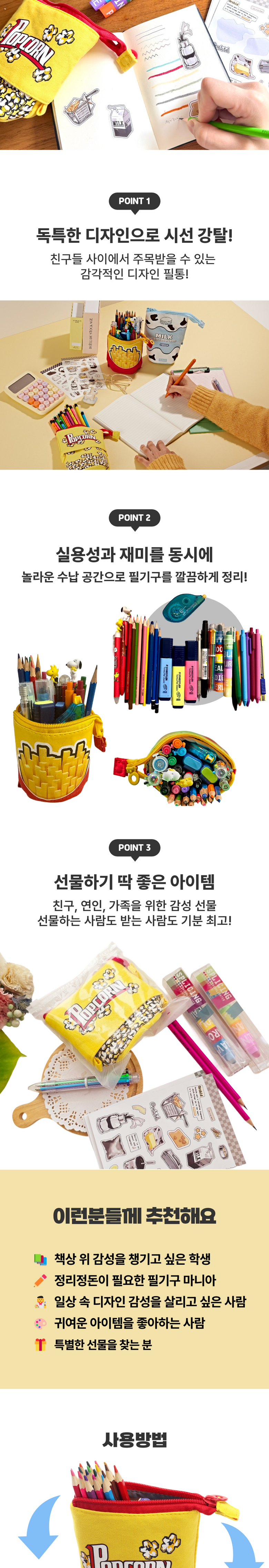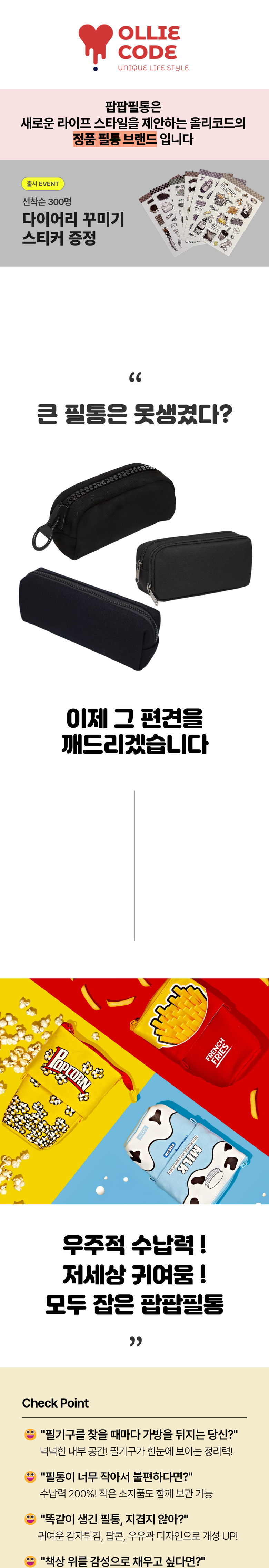올리코드 팝팝필통 일러스트 필통 필기구 세트 증정 접이식 다용도 스탠드 파우치