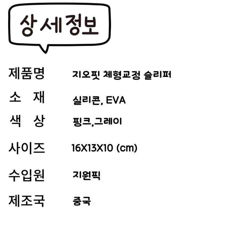 | 품명 및 모델명 | 지오핏 스트레칭 교정슬리퍼 | 인증/허가 사항 | 해당없음 |