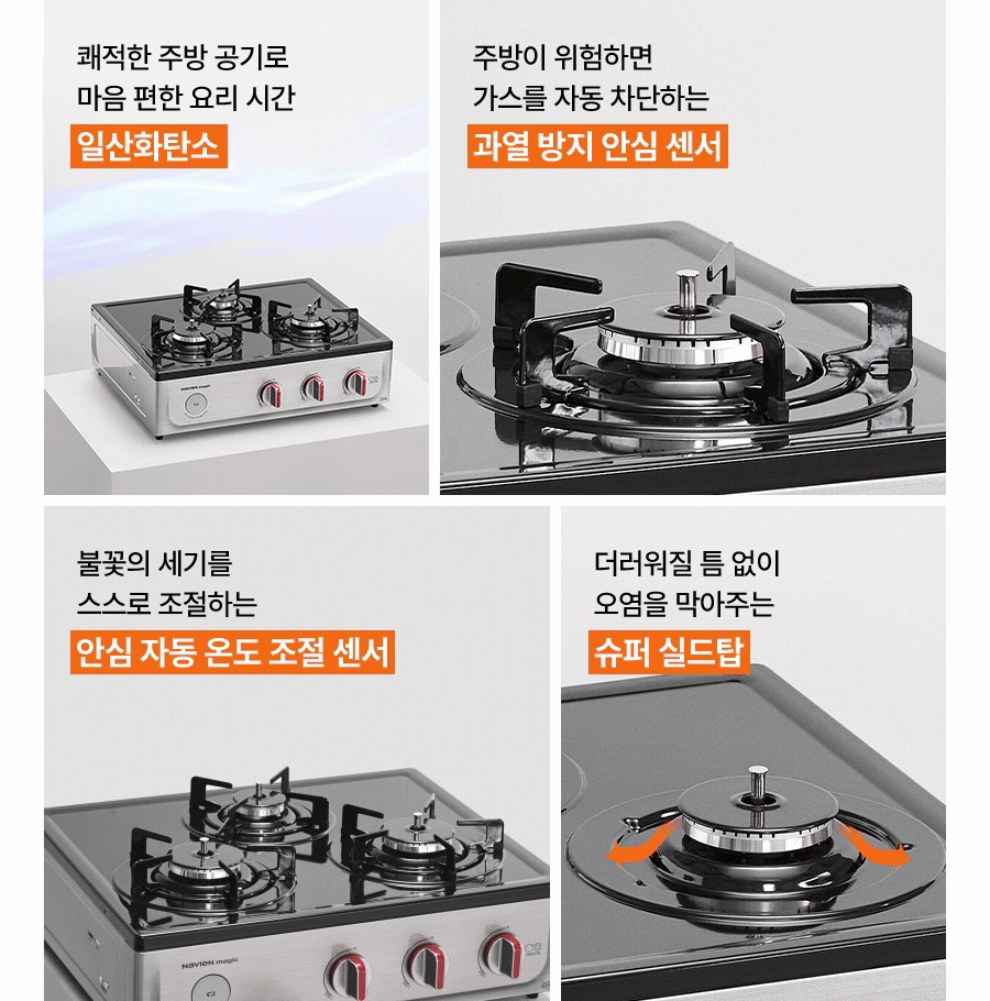 | 품명 및 모델명 | 나비엔 매직 자동온도조절 가스레인지 / GRF-7003PD | KC 인증정보 | KSB8114 (제 7307호)|전지: B052R949-1002A |
