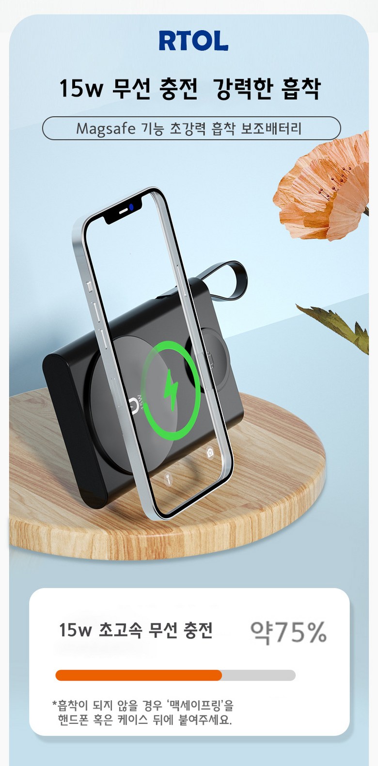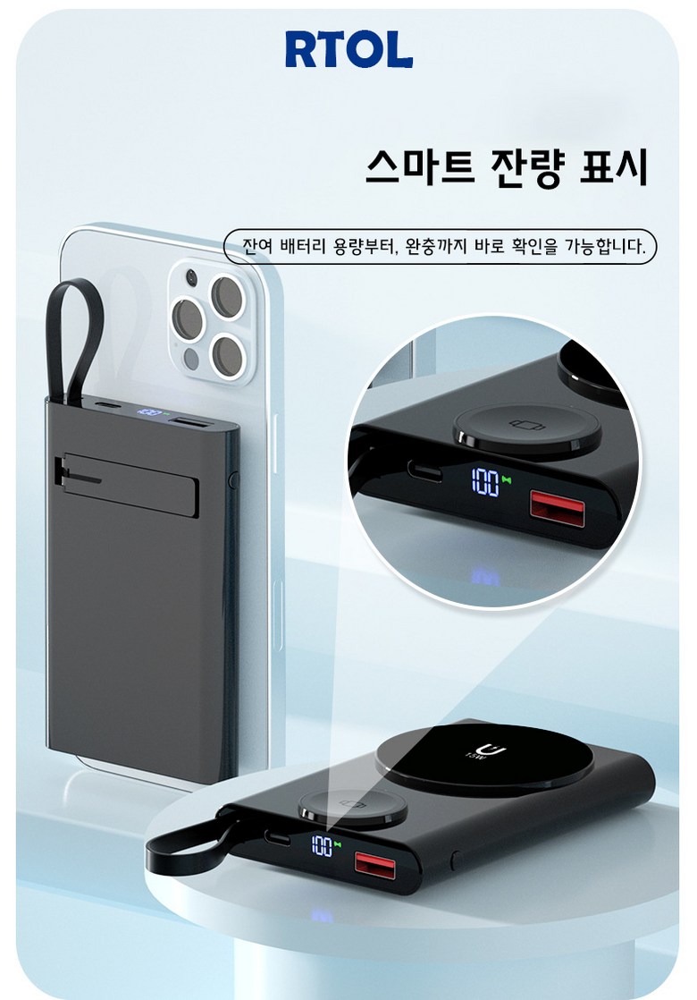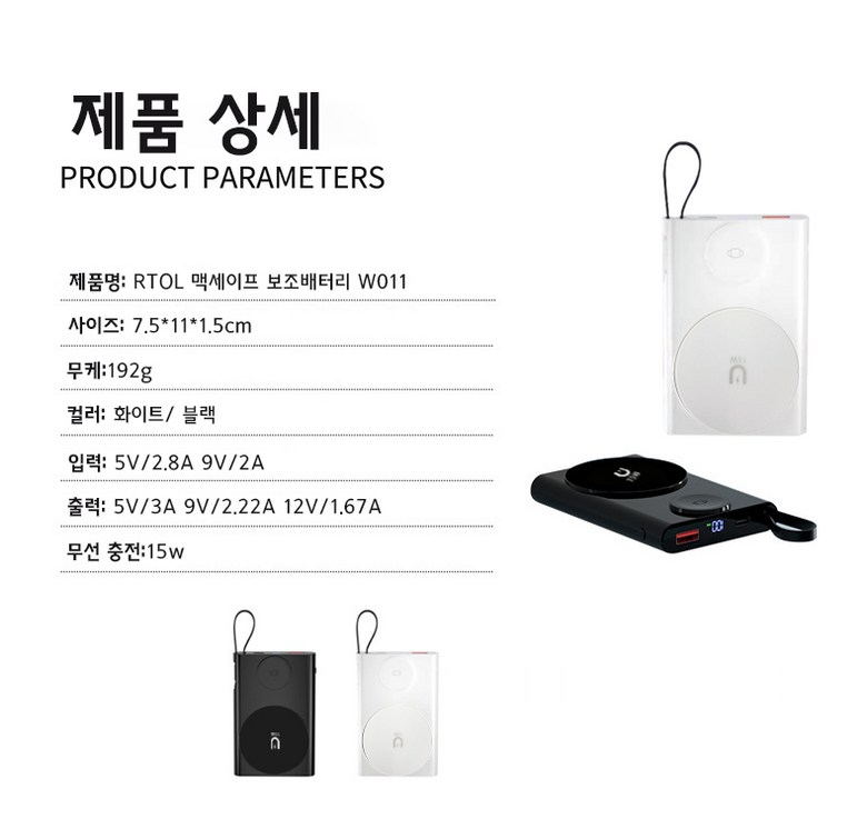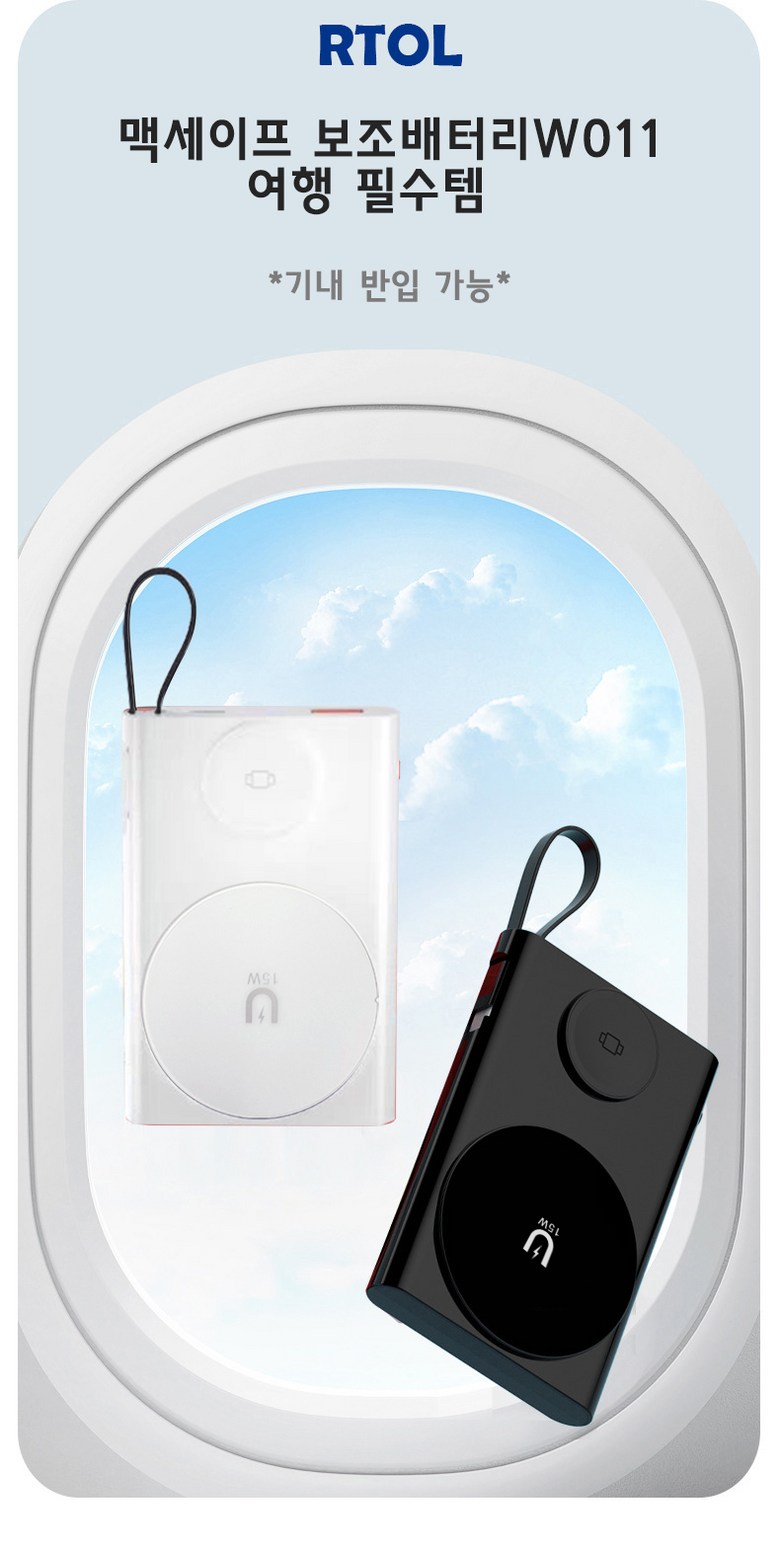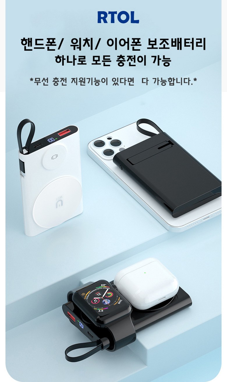 | 품명 및 모델명 | RTOL 일체형 워치 맥세이프보조배터리 W011 | KC 인증정보 | R-R-R2L-W018/ YU10903-21005 |