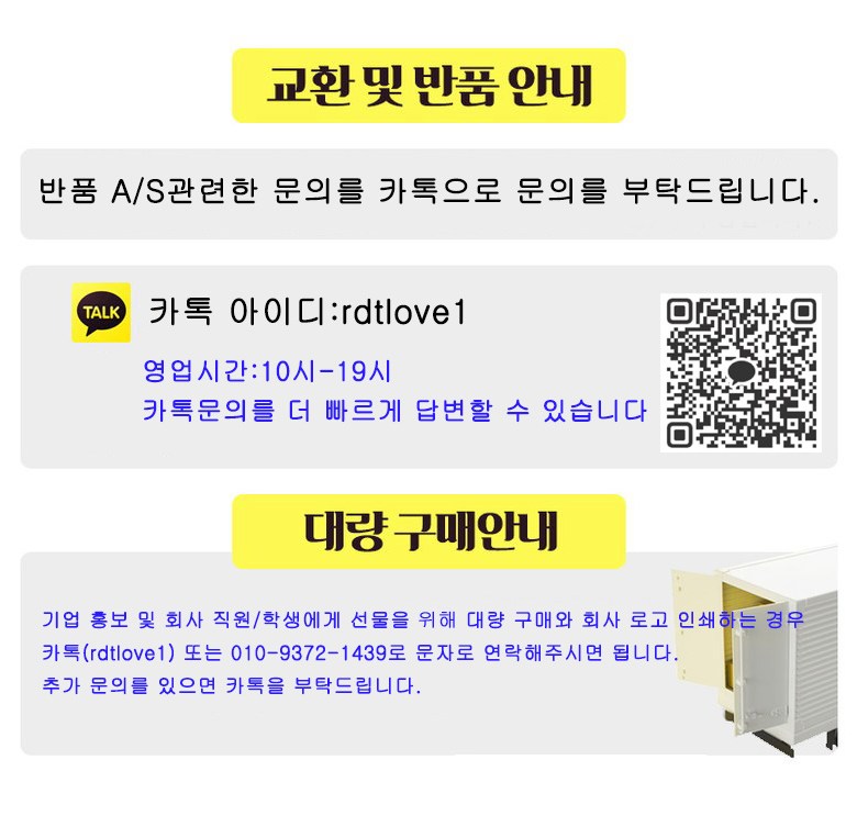 - ㆍ교환/반품에 관한 일반적인 사항은 판매자가 제시사항보다 관계법령이 우선합니다.