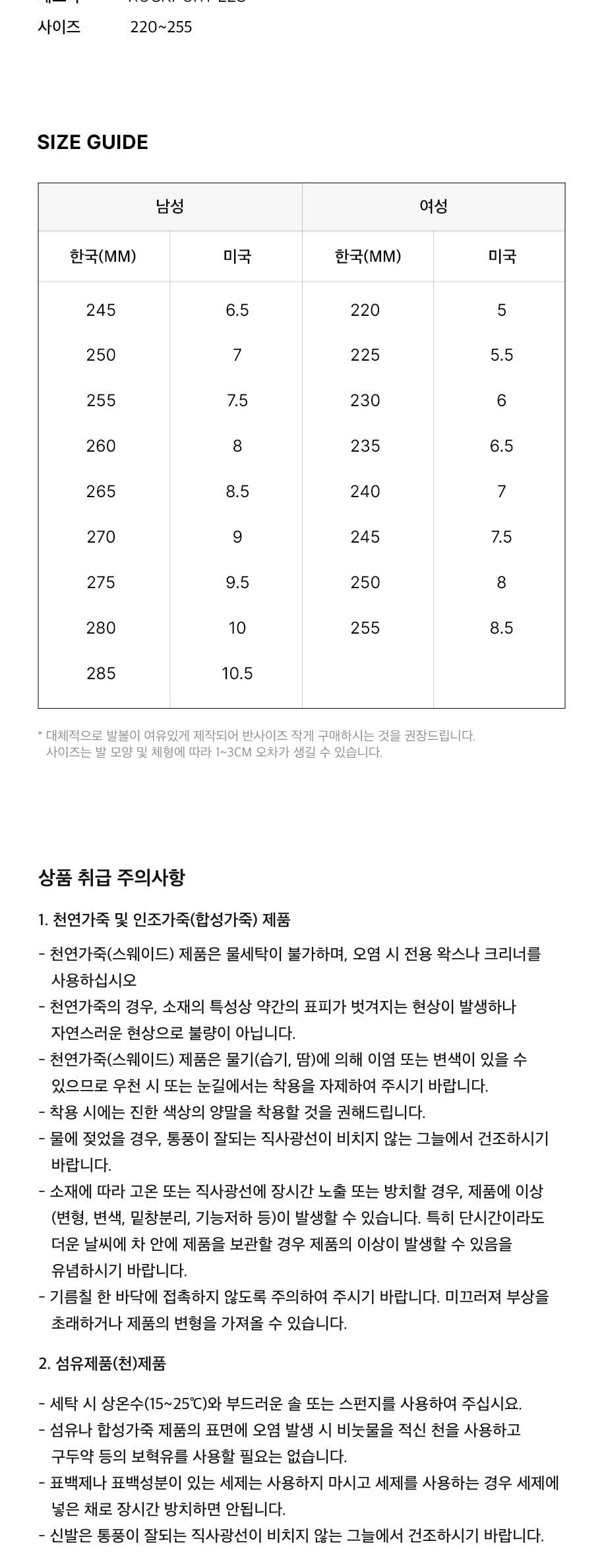 | 치수 | 컨텐츠 참조 | 제조자(수입자) | ROCKPORT LLC / 업체미제공 |