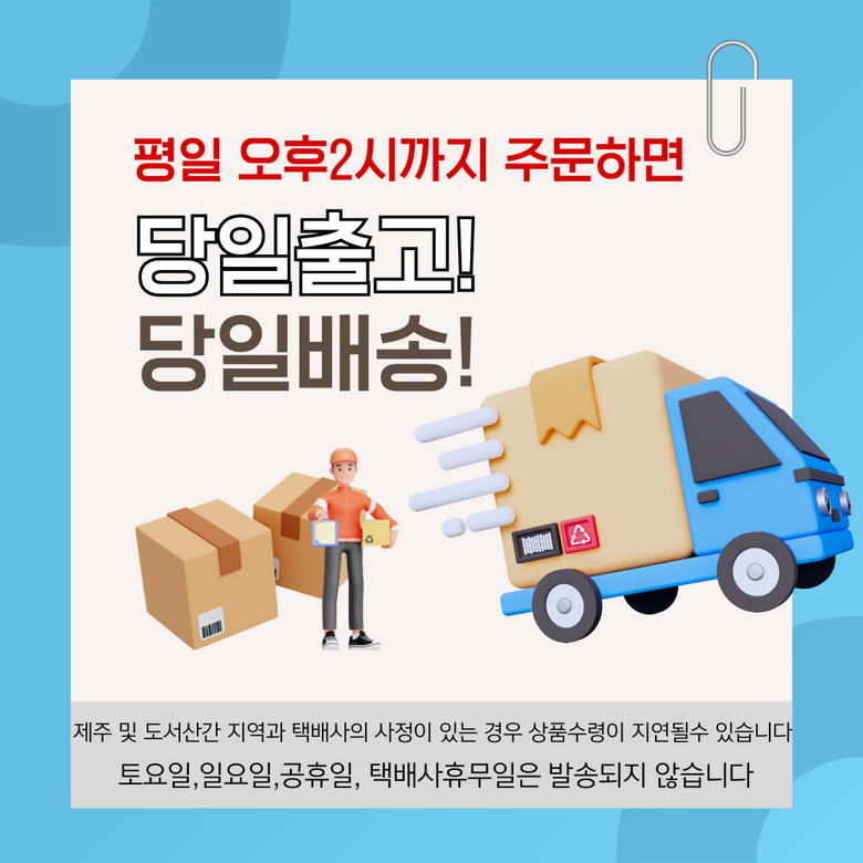 - ㆍ모니터 해상도의 차이로 인해 색상이나 이미지가 실제와 달라, 고객이 단순 변심으로 교환/반품을 무료로 요청하는 경우