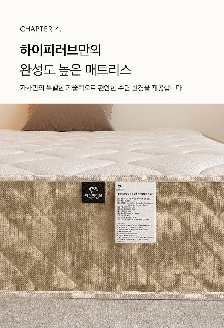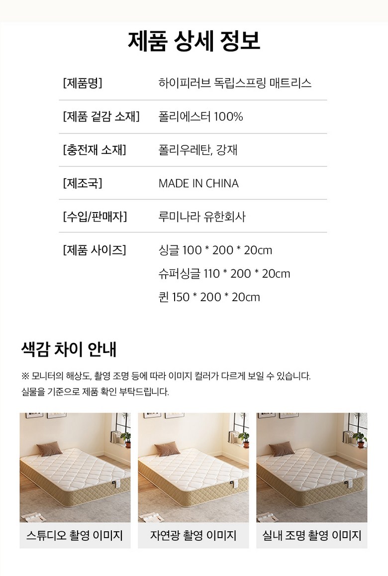 | 품명 및 모델명 | 하이피러브 독립스프링 매트리스 20cm | 인증/허가 사항 | 인증대상아님 |