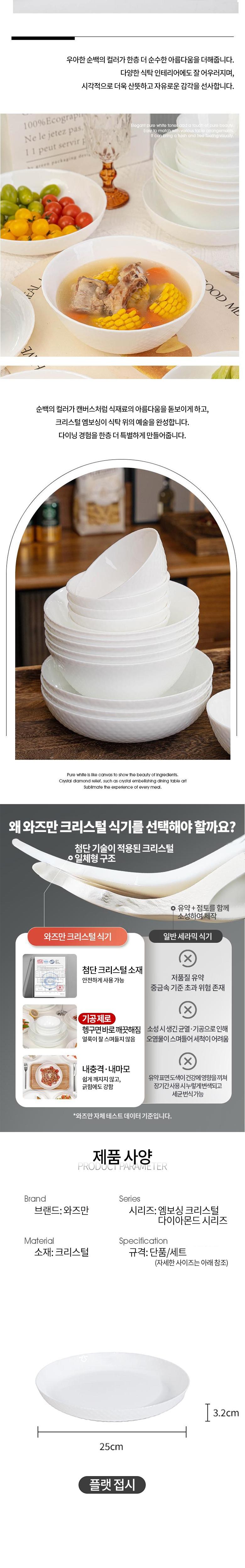 와즈만 엠보싱 크리스털 다이아몬드 시리즈 플랫 접시 2개입, 화이트, 1개