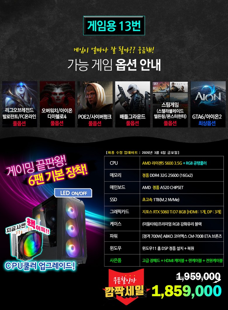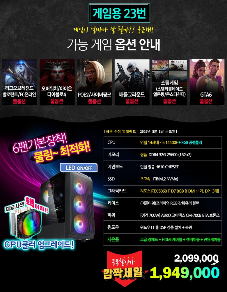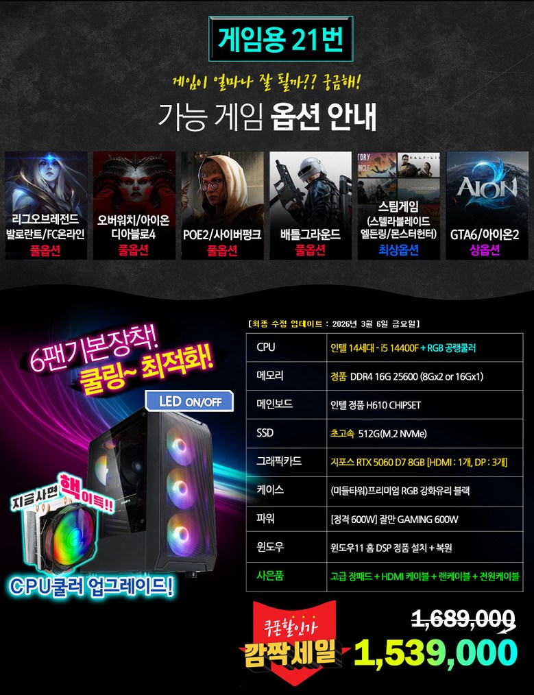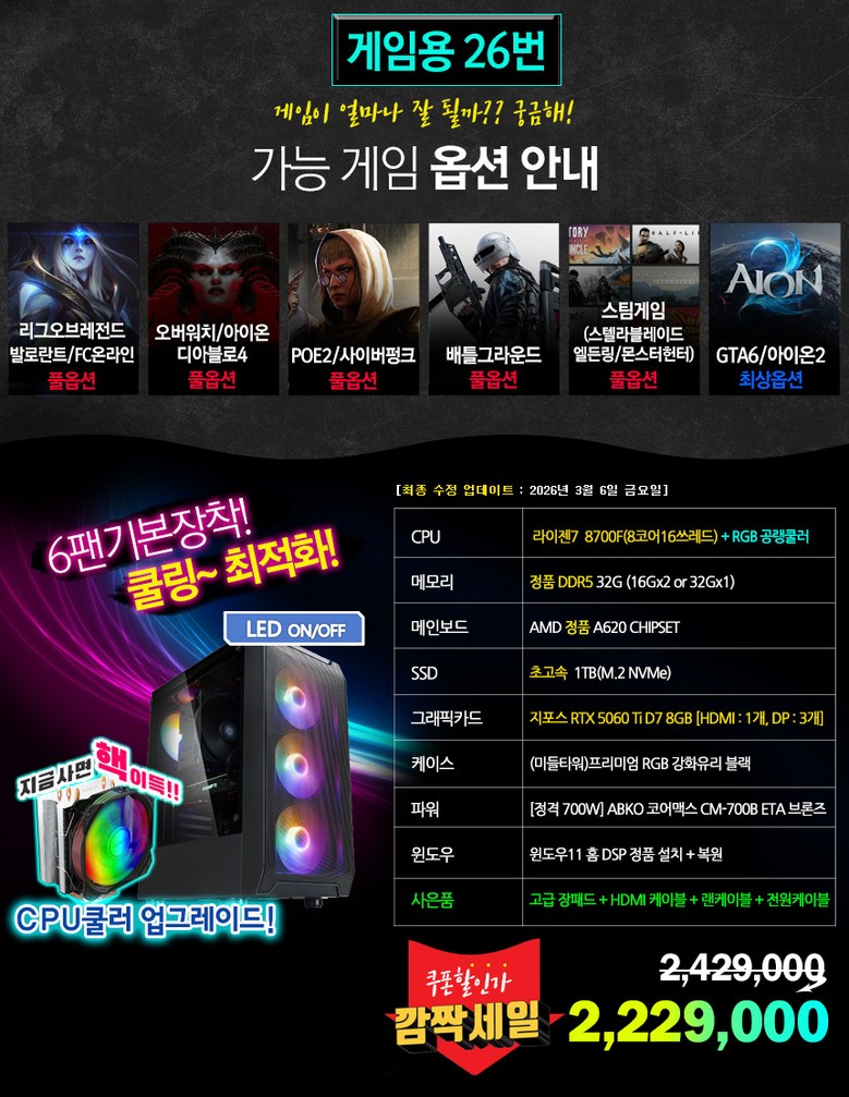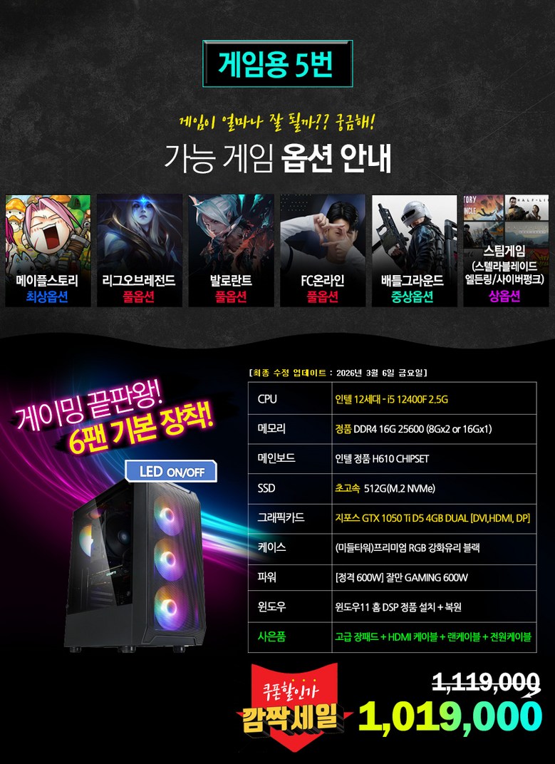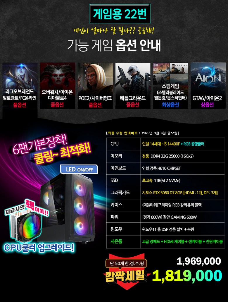 - ㆍ제조사의 사정 (신모델 출시 등) 및 부품 가격 변동 등에 의해 무료 교환/반품으로 요청하는 경우