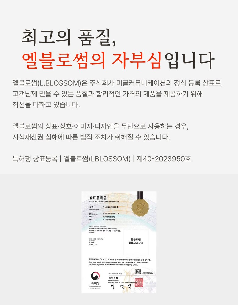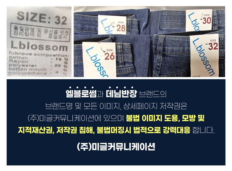 | 치수 | 26(S),28(M),30(L),32(XL) | 제조자(수입자) | 엘블로썸 자체제작 |