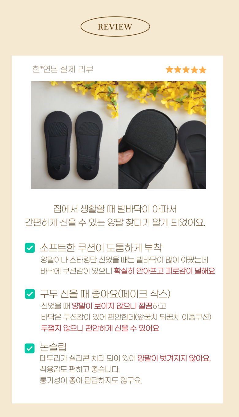 | 품명 및 모델명 | 라트번 쿠션 양말 | 인증/허가 사항 | 해당 없음 |