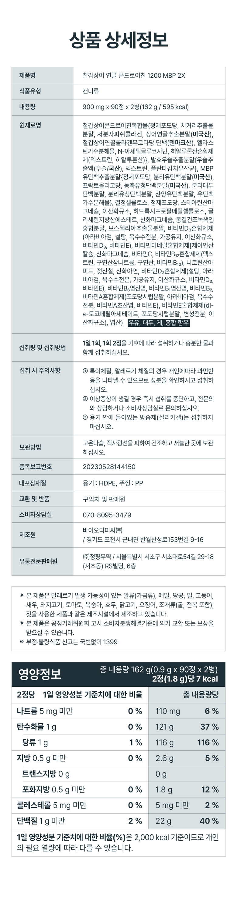 | 원재료명 및 함량 | 상품 상세페이지 참조 | 영양성분 | 상품 상세페이지 참조 |