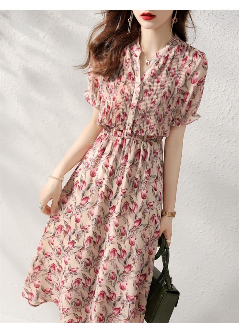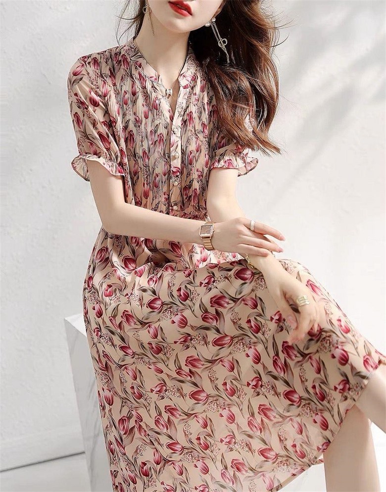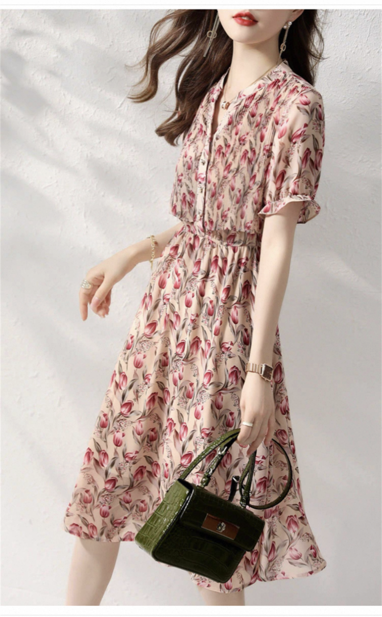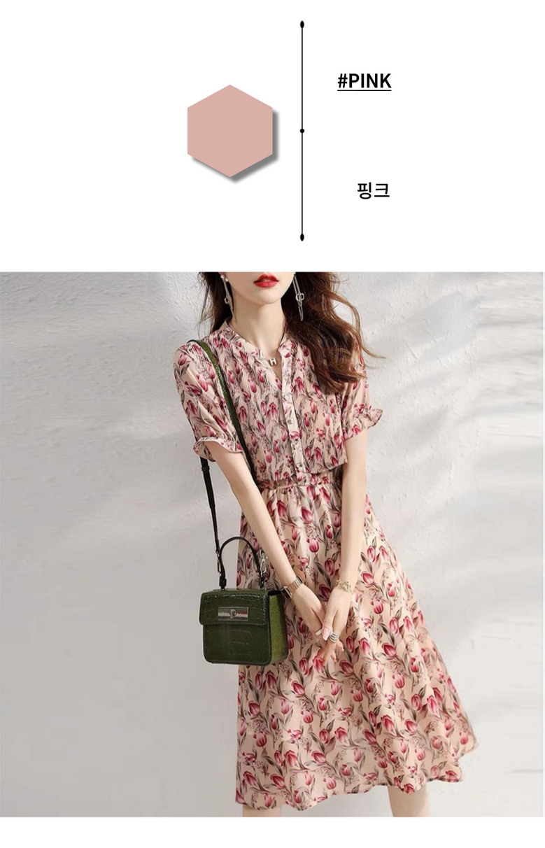 휠렉스 여성 꽃무늬 해변가 데일리 루즈핏 반팔 원피스 YA59