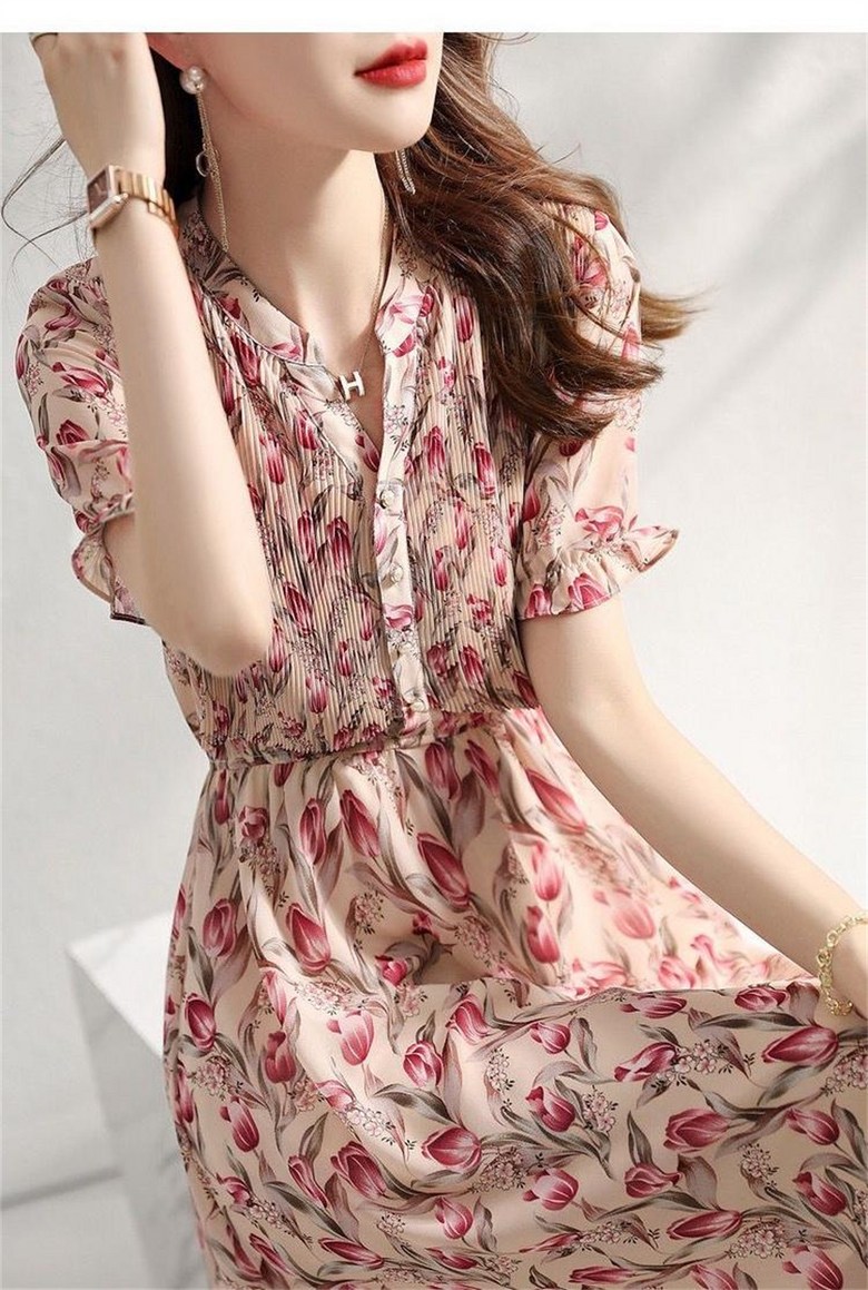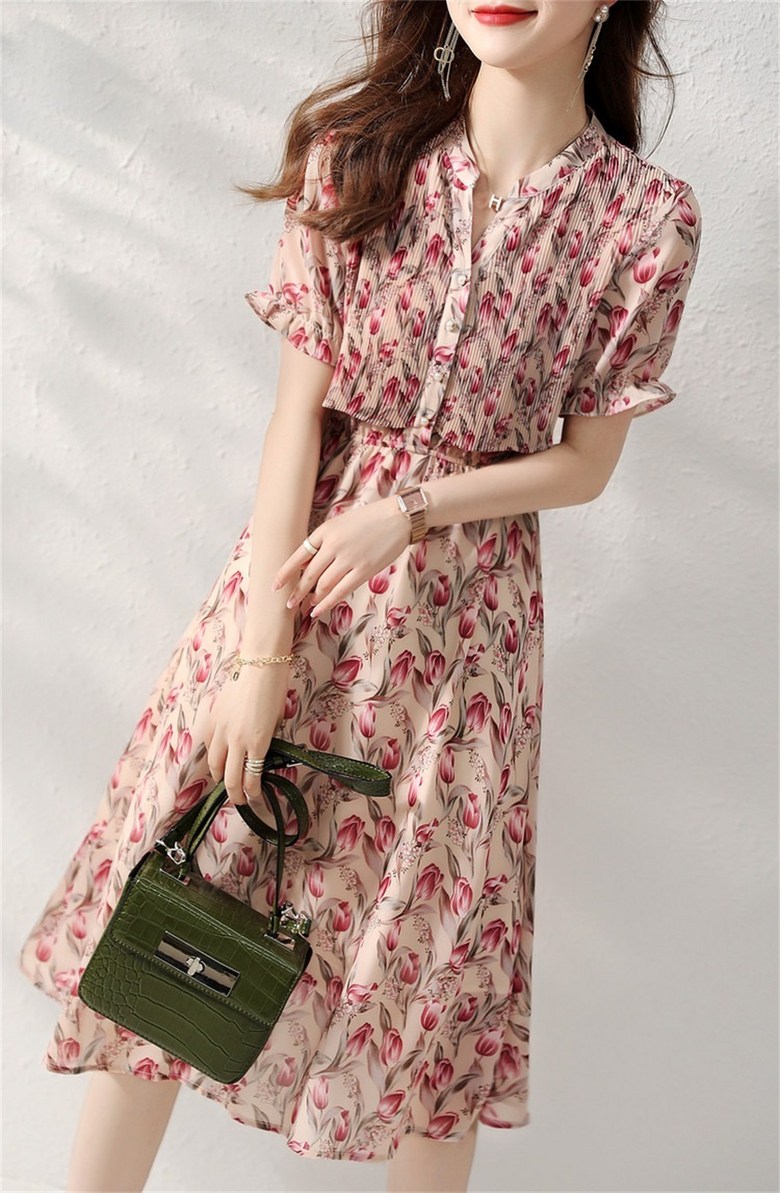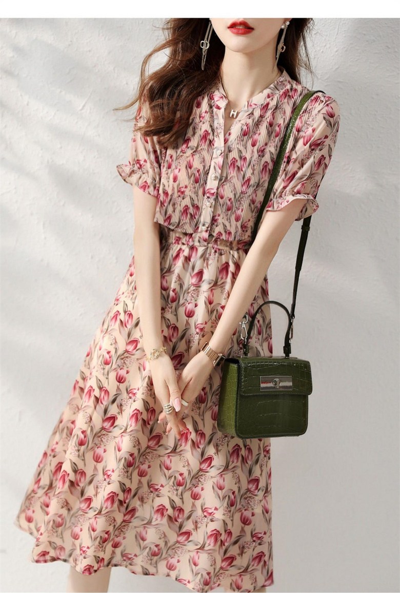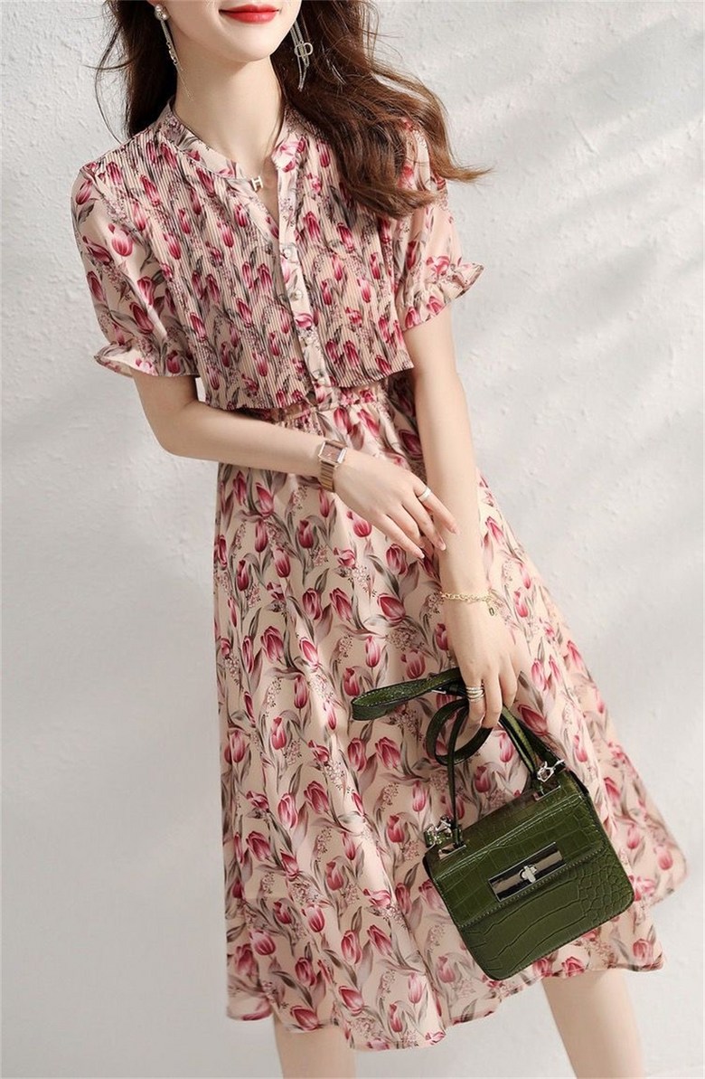 휠렉스 여성 꽃무늬 해변가 데일리 루즈핏 반팔 원피스 YA59