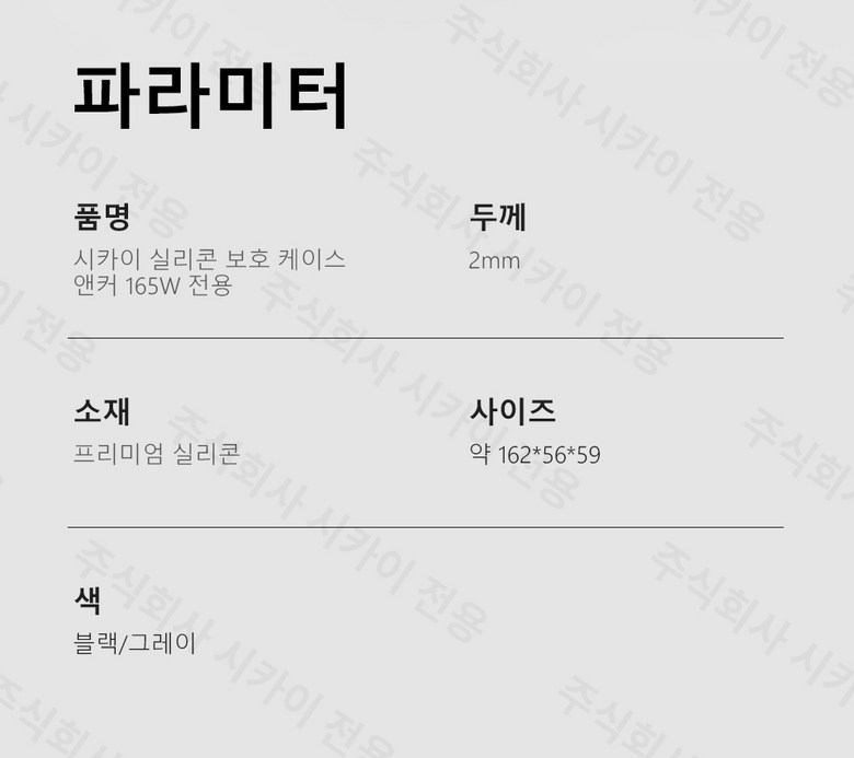 | 품명 및 모델명 | 엔커 165W 실리콘 보호 케이스 | KC 인증정보 | 해당없음 |