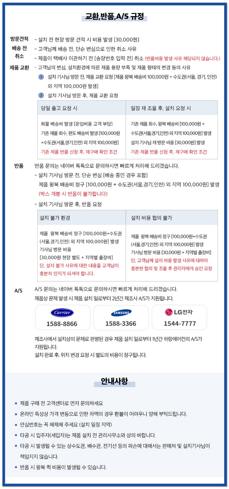 - ㆍ교환/반품에 관한 일반적인 사항은 판매자가 제시사항보다 관계법령이 우선합니다.