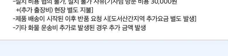 | 교환/반품 비용 (왕복비용) | 0원 - 단, 고객 변심의 경우에만 발생 - 도서산간 및 일부 지역 추가비용 발생 |