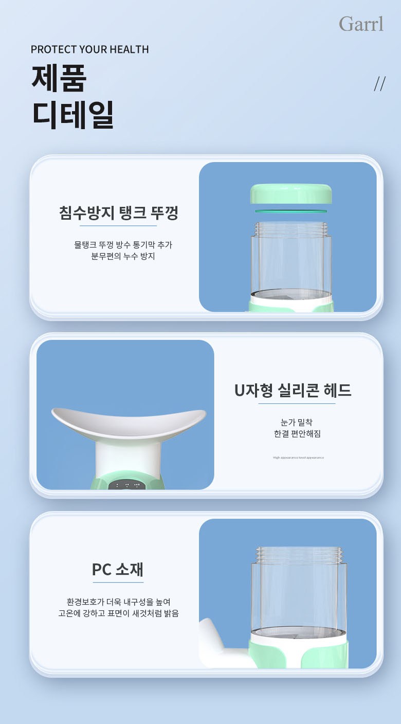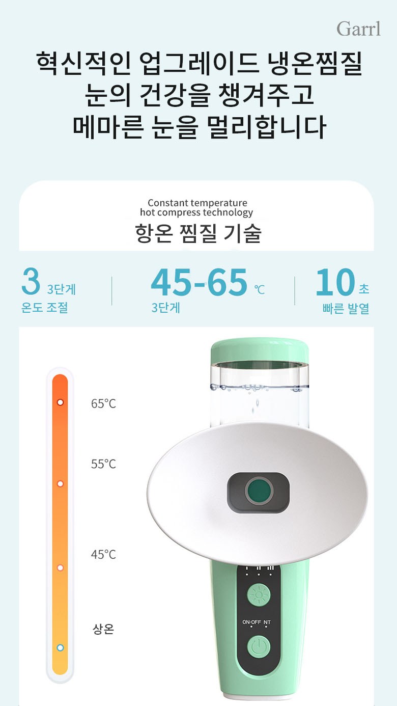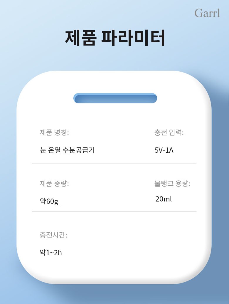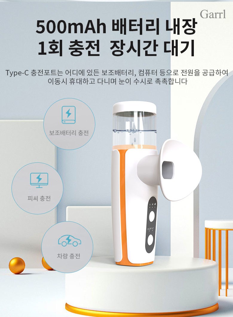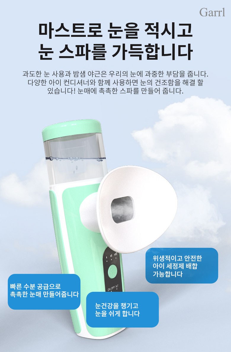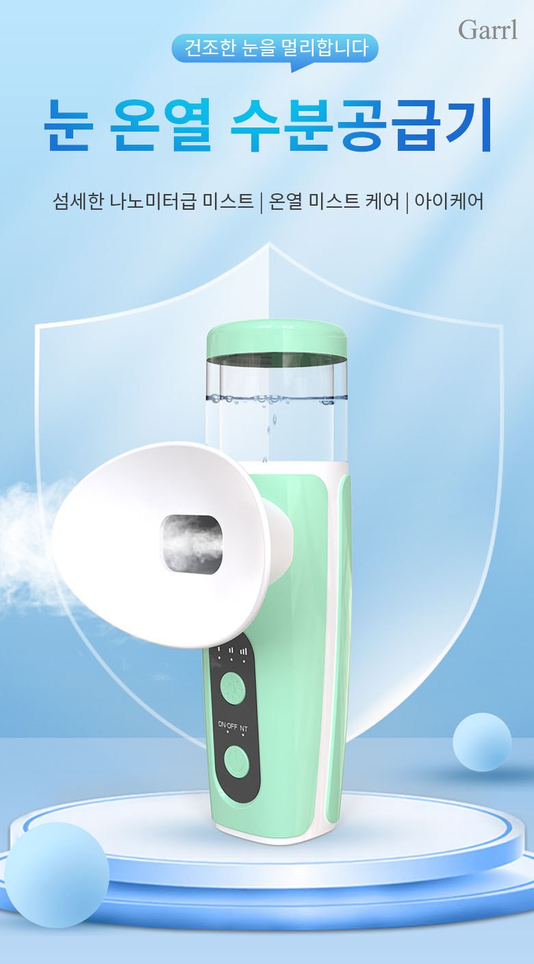 Garrl무선 눈 온열 수분공급기 나노 미스트 휴대용 안부 수분공급기 안부 가습기 충전식 피부 겸용