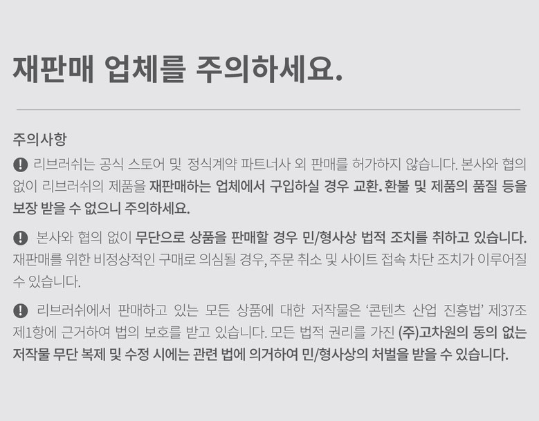 - ㆍ모니터 해상도의 차이로 인해 색상이나 이미지가 실제와 달라, 고객이 단순 변심으로 교환/반품을 무료로 요청하는 경우