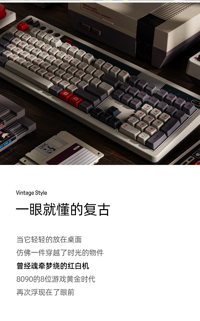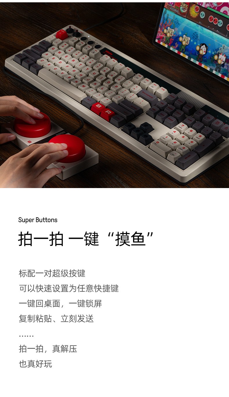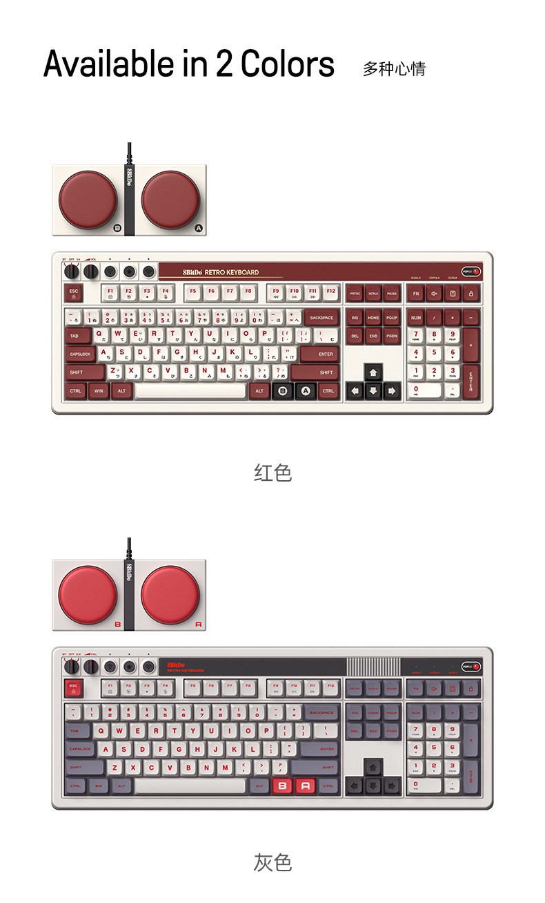 8BitDo Retro108 기계식 키보드 블루투스 유무선 3모드 연결 레트로 키보드 핫스왑 듀얼 슈퍼버튼 포함 카이화BOX V2축