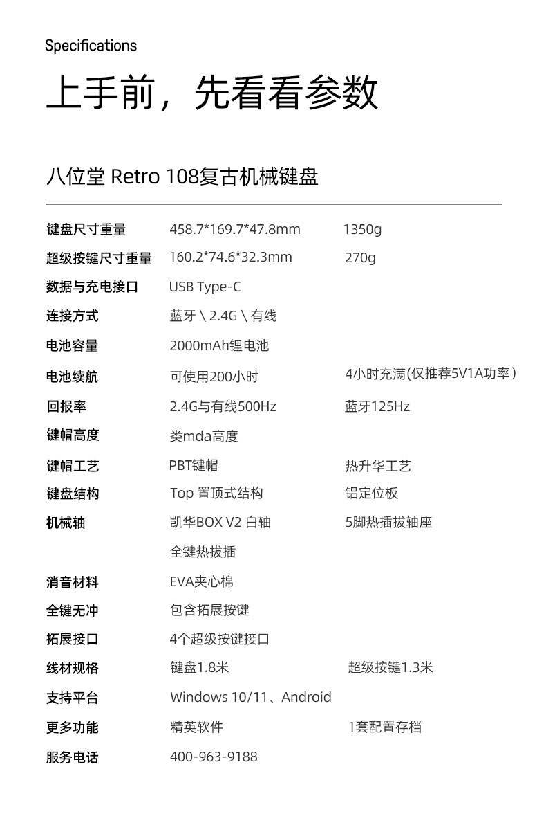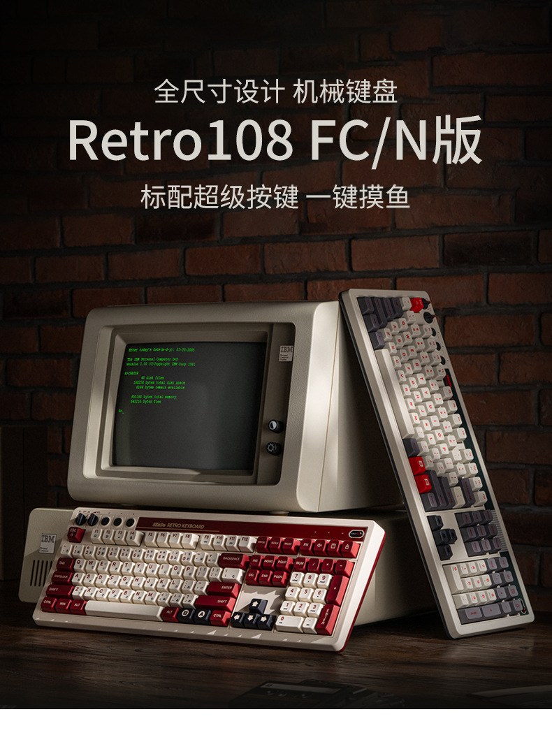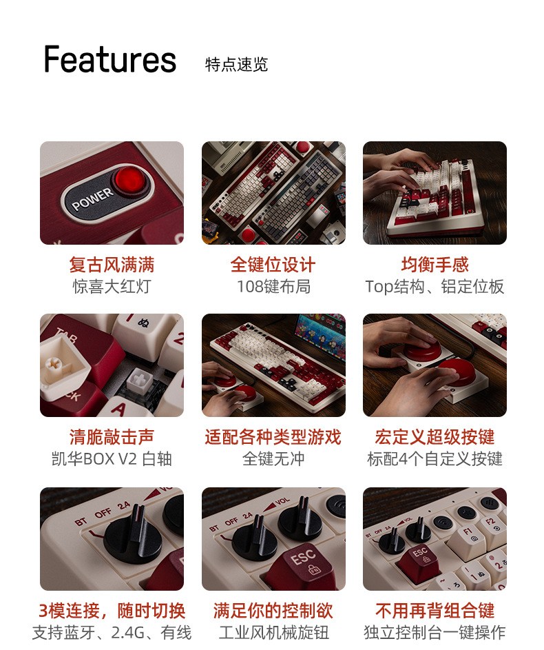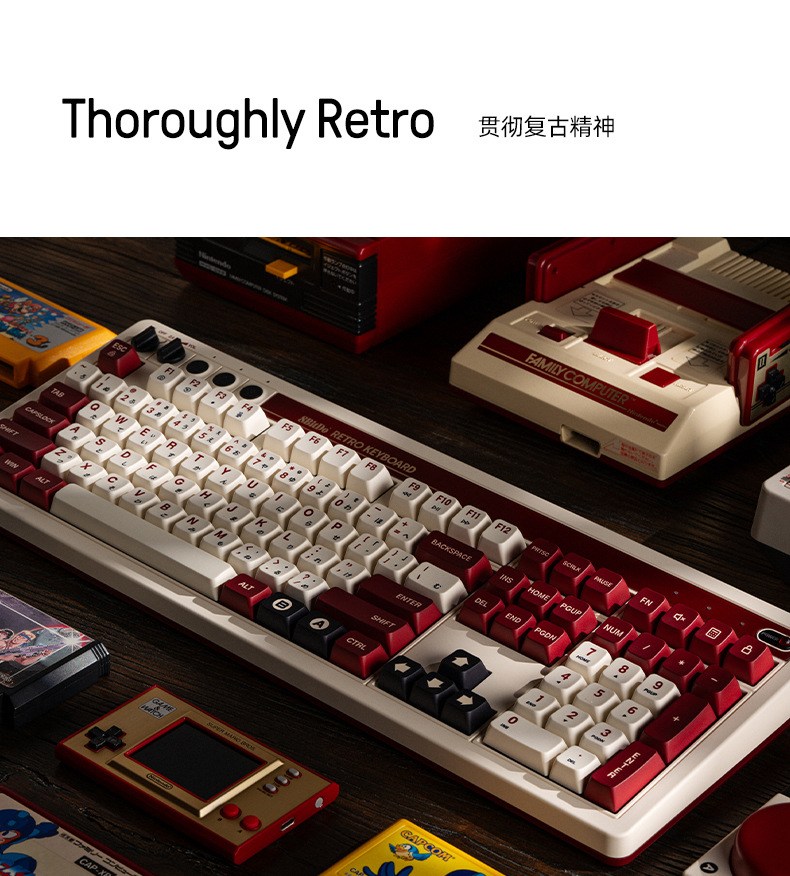 8BitDo Retro108 기계식 키보드 블루투스 유무선 3모드 연결 레트로 키보드 핫스왑 듀얼 슈퍼버튼 포함 카이화BOX V2축