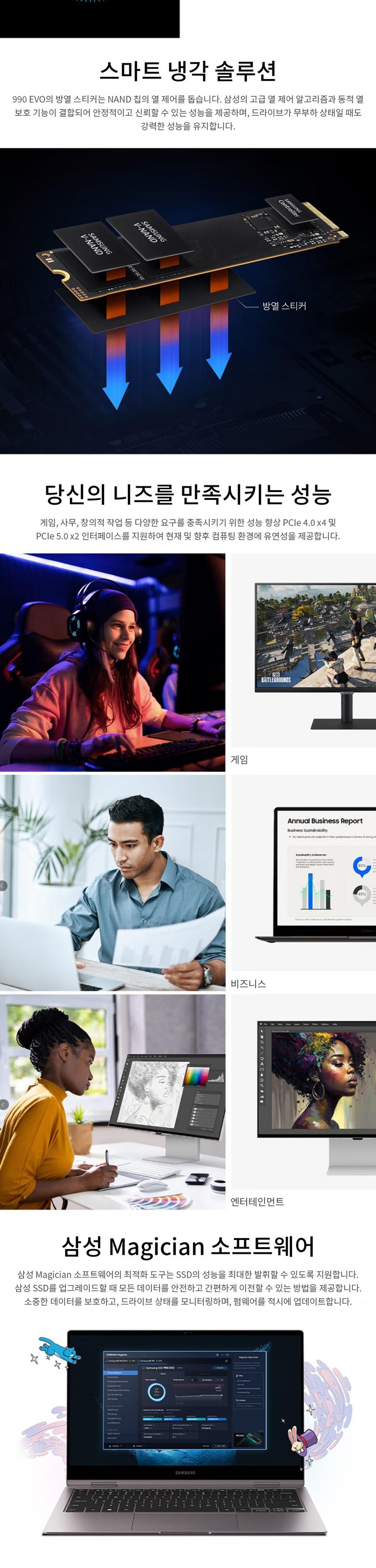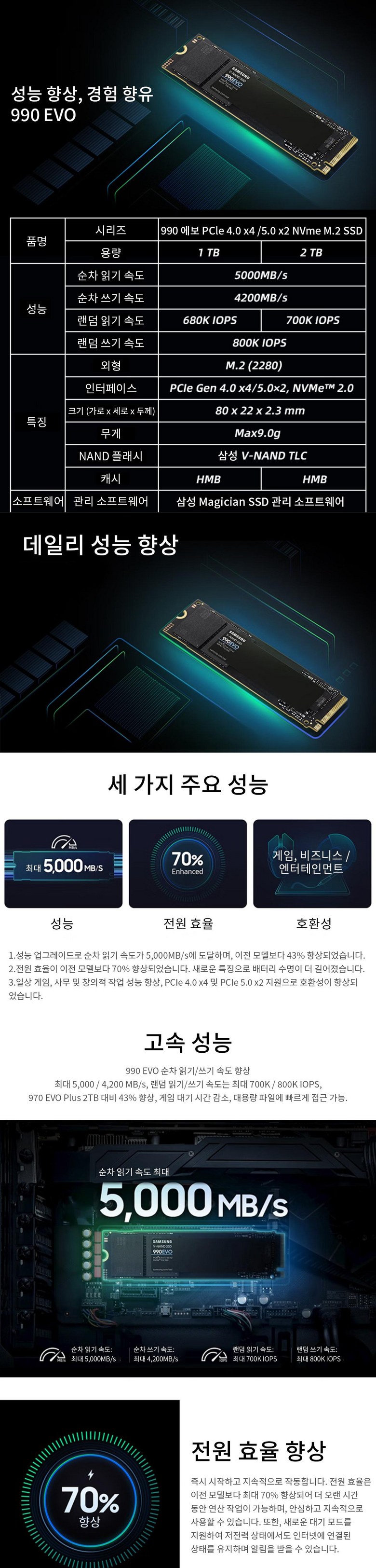 삼성전자 V-낸드 990 에보 PCle 4.0 x4 /5.0 x2 NVme M.2 SSD