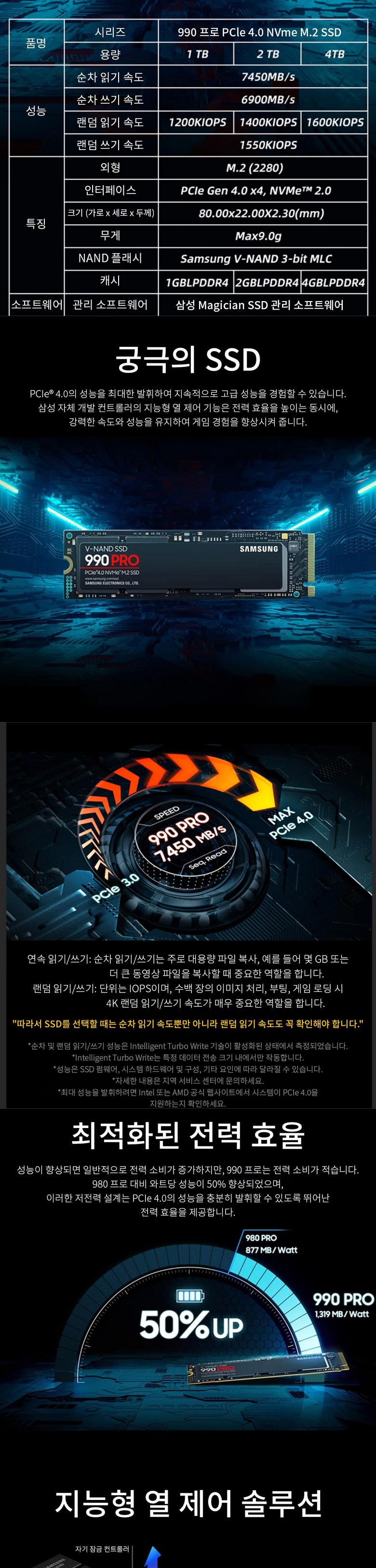 삼성전자 V-낸드 990 PRO PCle 4.0 NVme M.2 SSD