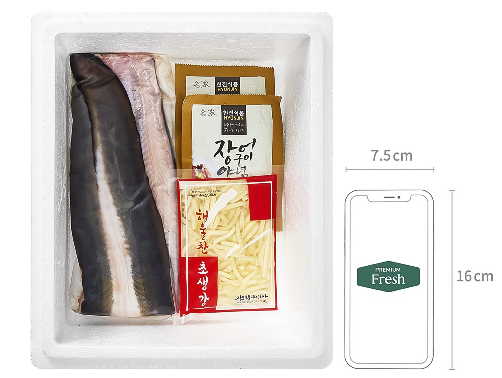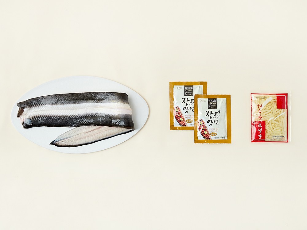 · 장어, 장어구이 양념 (순한 맛), 백초생강으로 구성되어 있습니다.
