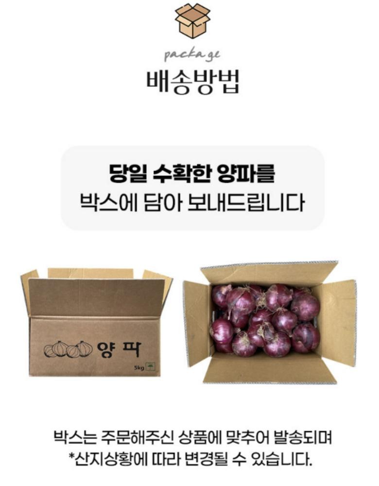 중량 × 수량: 양파 (소) 2kg × 1박스